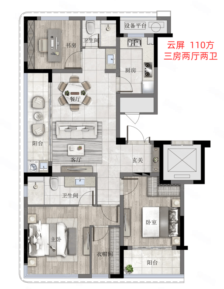 【户型面积】89-135方;改善三房四房户型