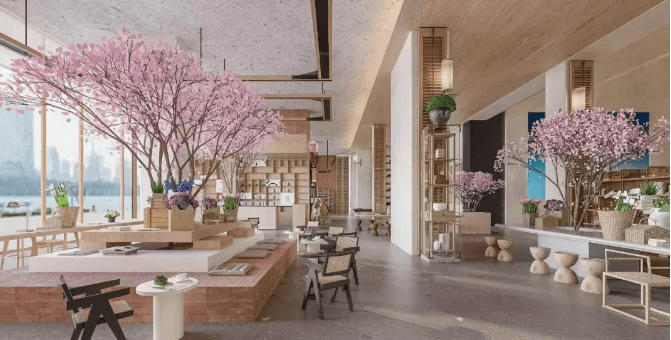 共享大厅:1 楼设有约 1700㎡共享大厅,涵盖食堂、兴趣活动区域、舞台、钢琴区域、咖啡等空间,招商意向包括轻食餐饮、花店、蛋糕烘焙等,为业主提供休闲、社交的场所。