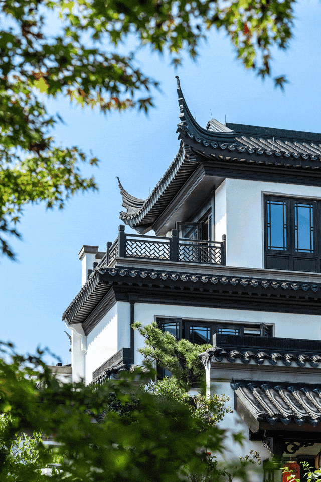 一园宋韵,境呈江南风雅。古越珺府特邀“戗王”顾水根、“掇山大师”袁荣福执笔操刀,“三进归园,一水南北”层层入境。园区内移步异景,戗角高翘,黛瓦覆盖,廊亭高敞,假山苍古,花窗疏影,亭桥廊道,院落围合等,将东方诗意融入日常,形成“园中藏园”的层次感,一幅诗意画卷由此徐徐展开。