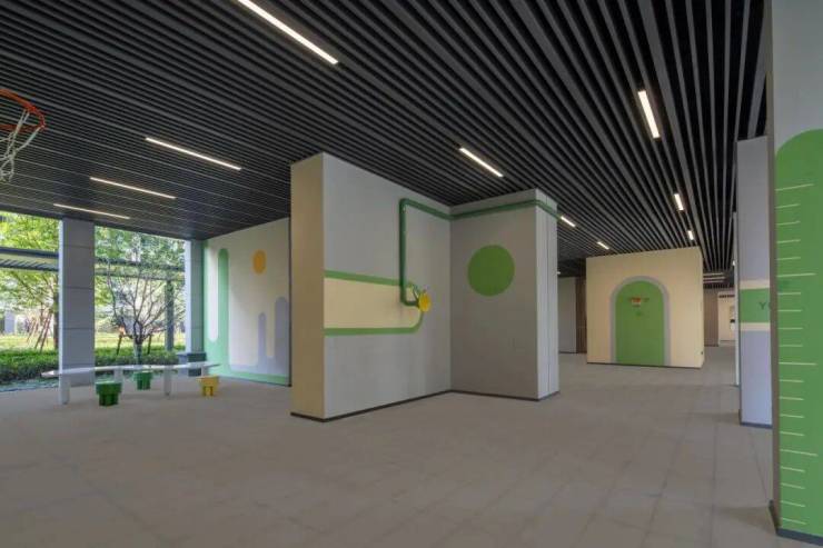 中央花园南面的6号楼首层架空设计,打造了儿童玩乐、运动健身、休闲交流等空间,为业主提供一个全龄段的邻里天地。