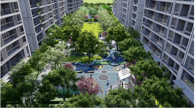 景观设计:以 “一府三境,八景九悦” 为核心构架,构造 “一环、两轴、多组图” 的园林式景观空间,配合超大楼间距,营造户户皆有景的诗意栖居。