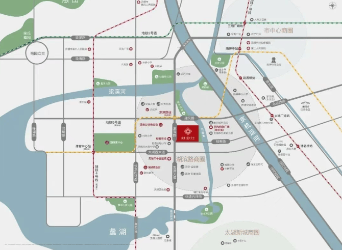 交通配套:周边规划有地铁 5 号线,紧邻湖滨路、建筑路、太湖大道、红星路、青祁路等城市交通主干道,公交方面有多条公交线路覆盖,如 1 路、11 路、36 路等,可直达无锡市各大商圈和重要地点6。