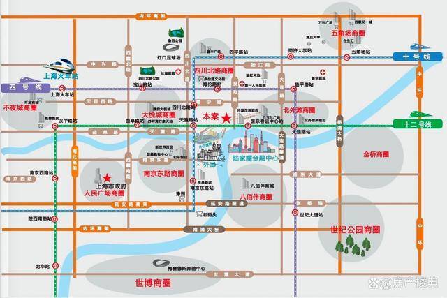 上海星荟中心450米、耀江国际广场450米、中信广场700米、白玉兰广场1公里、南京东路商圈1.4公里等(数据来自百度地图)