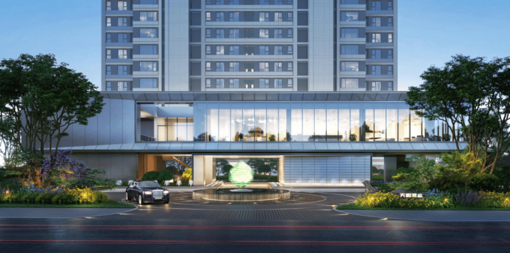 项目大门比较简洁,采用了酒店式的车行环岛,落客区可以直接进入,仪式感拉满。
