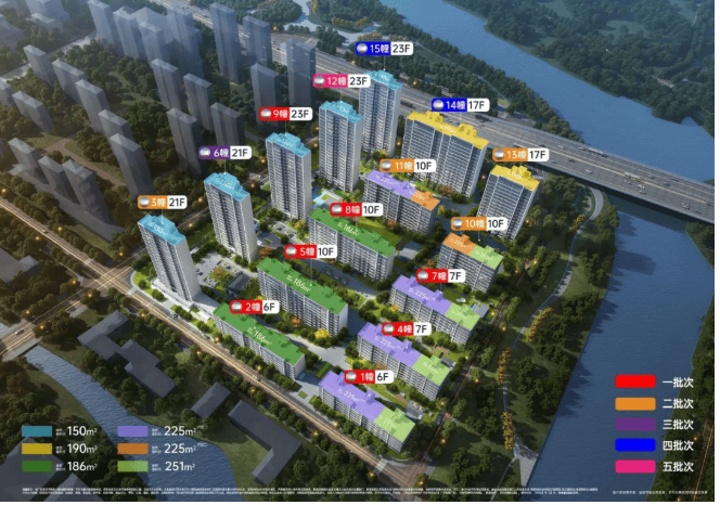 产品类型:纯改善低密社区,涵盖高层、小高层及洋房,户型面积段为建面约149-251㎡