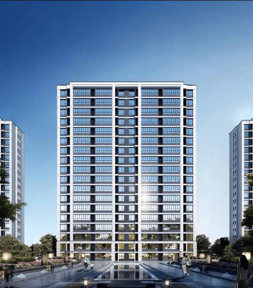 整体建筑遵循简约的设计理念,强调横向线条,轻巧优雅。立面材质以米白色真石漆、石材为主调,辅以灰色装饰点缀,形成视觉焦点。玻璃在光线的作用下,显现出不同的光影变化,亦实亦虚,美仑美奂。