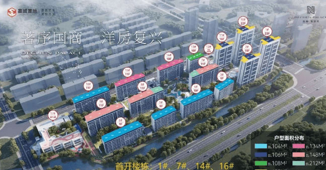 户型面积:洋房户型面积为 104㎡-134㎡-148㎡-212㎡,高层户型面积为 106㎡-136㎡。