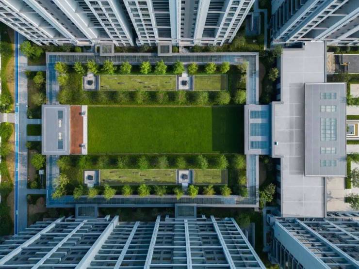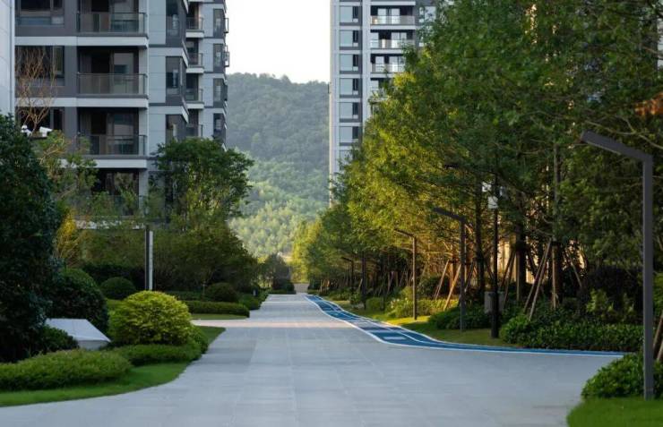 在高层和合院之间,宝业·云溪里打造了一条约300米的娜塔栎树阵,纵贯园区南北,既是两种产品的分界线,也是家园生活的交融之地。色彩多变的娜塔栎树,跟随四季流转,颜色由翠绿变金黄,再到橙色、红色,带来绚丽缤纷的视觉享受。