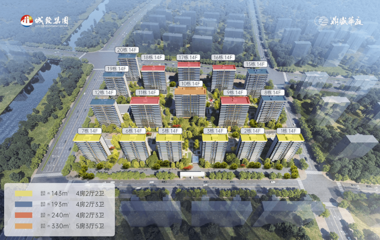 主力户型:有 143-330㎡多种户型可供选择,涵盖四房至五房。其中,143㎡为四房两厅两卫,南北通透,U 型厨房;193㎡为四房两厅三卫,5.6 米横厅,270° 环幕视野;240㎡为四房两厅三卫,独立电梯厅,270° 采光;330㎡为五房三厅五卫,双梯入户,空中院墅设计。