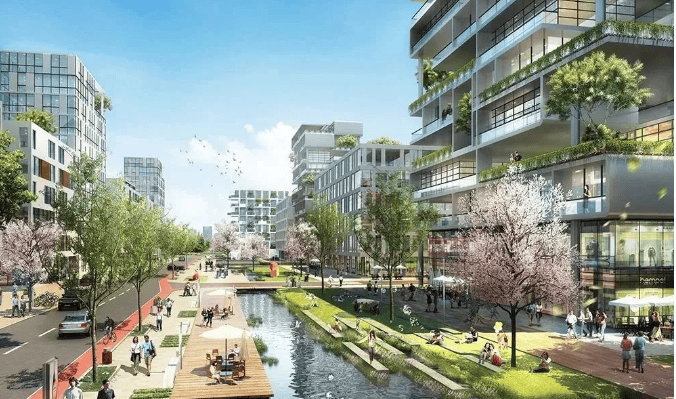 建筑规划:项目由 14 幢住宅组成,包括 5 栋总高 9 层楼、2 栋总高 10 层楼和 7 栋总高 15 层楼,面积段规划为建筑面积约 106㎡的三房和约 133㎡的四房产品。