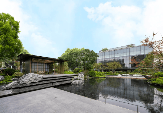 园林景观:园区景观实景呈现,迎宾黑松、叠水景观、阳光草坪等营造自然氛围,全龄乐园、露天泳池等设施丰富。