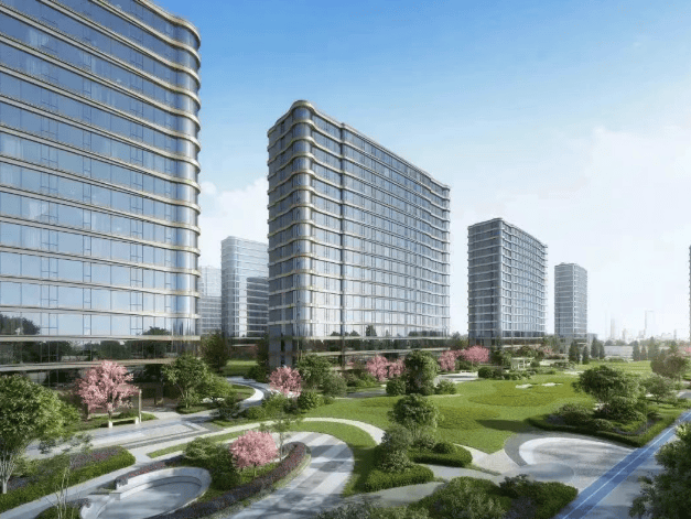 建筑设计独特:创新采用双曲面玻璃幕墙搭配香槟金铝板线条,打造南北双立面视觉通廊,单层层高达 3.1 米,室内净高 2.9 米,实现约 78%-81% 的实用得房率。