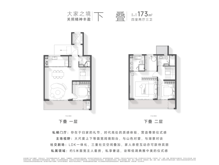墅居体验:双电梯配置,归家的尊贵仪式感;大尺度景观阳台,打开生活的风景视野。
