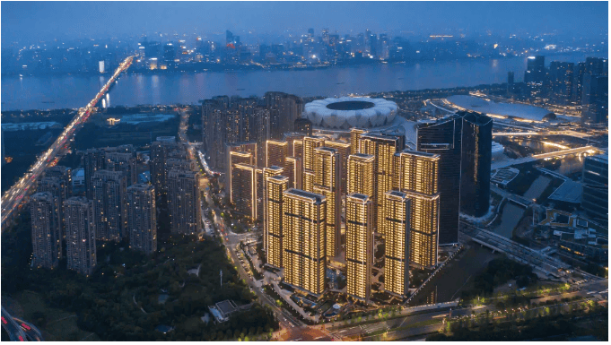 地段稀缺:地处钱塘江南岸奥体核心,与“大小莲花碗”直线距离仅约100-400米,是奥体板块最后可售的江景现房席位,周边已无同类可开发地块。