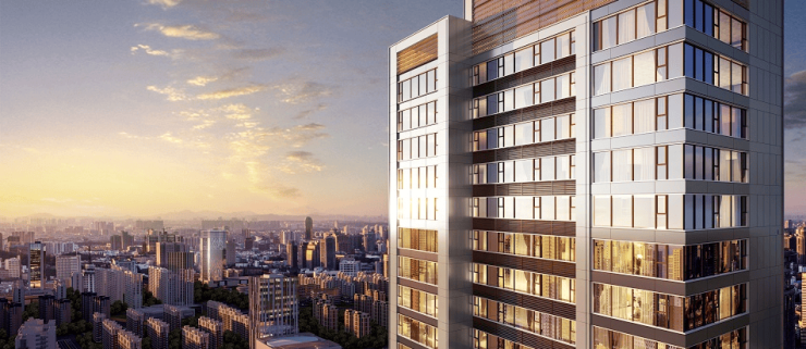天际双子建筑,外立面采用纯铝板+玻璃幕墙