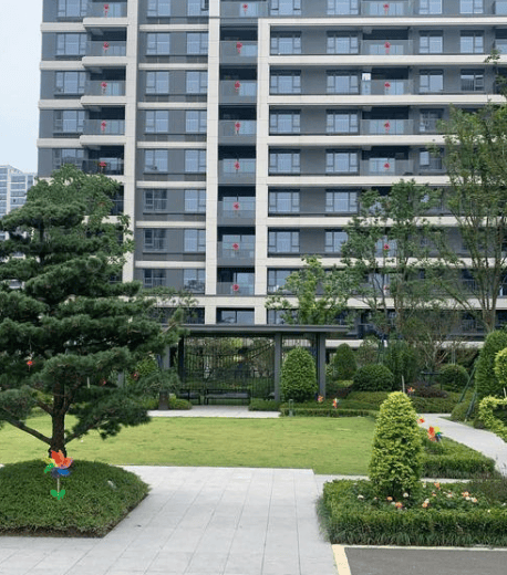 现代简约滨水风格,外立面以浅色系涂料 + 玻璃为主,线条简洁;社区内部有中轴水景、阳光草坪、林下休闲区、滨水步道;双水系环绕,步行可达迪荡湖公园,景观与水系融合,日常散步舒适;人车分流,保障老人小孩安全。