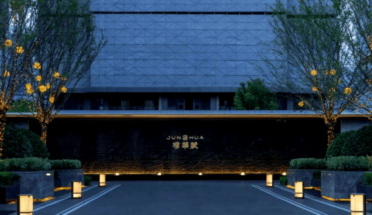 建筑与景观设计:建筑采用全铝板外立面搭配大面玻璃与金属线条,将苏式竹刻、榫卯元素融入现代建筑,既保证了建筑的耐用性,又彰显东方美学韵味。园林景观师法拙政园,打造两轴三境五重归家动线,全冠移植黑松、羽毛枫等名贵树种,搭配梵高印象、范思哲黑等奢石造景,营造出静谧雅致的居住环境。