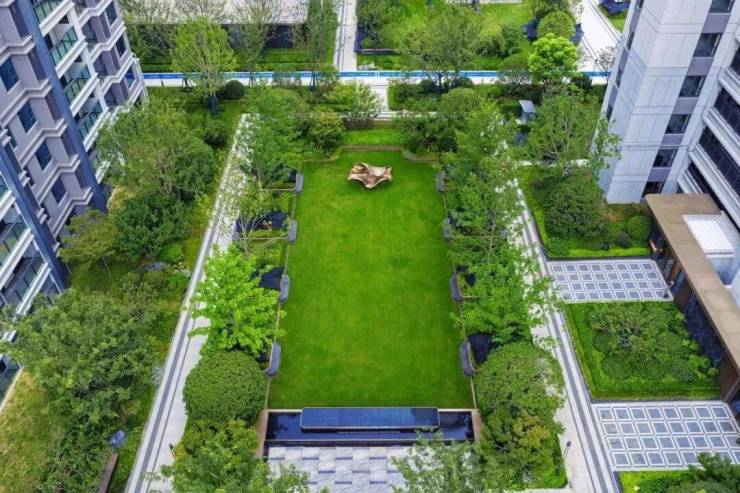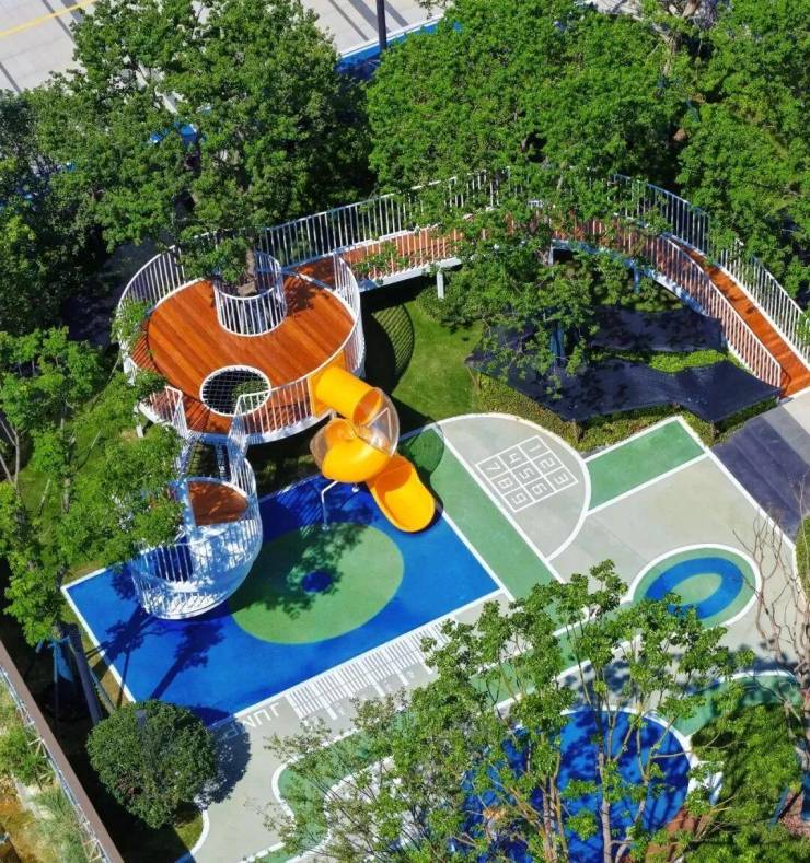 步入园区,满目葱茏令人心旷神怡。精心挑选的丛生紫薇、香桂、朴树等名贵树种,搭配层次丰富的花境草坪与环形活力跑道,在盛夏时节依然郁郁葱葱,远超预期的成熟园林景观,成为区域绿意盎然的颜值担当。