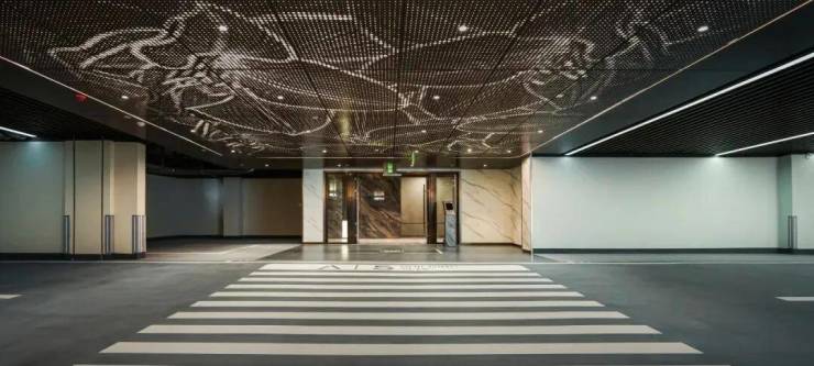 精工打造的双层精装入户大堂,以爱马仕灰石材与香槟金格栅交相辉映,延续了空间的质感与温度。即便是地下归家动线,也以同源劳斯莱斯创意的“星空顶”地下车库设计,将品质感延伸至每一处细节。
