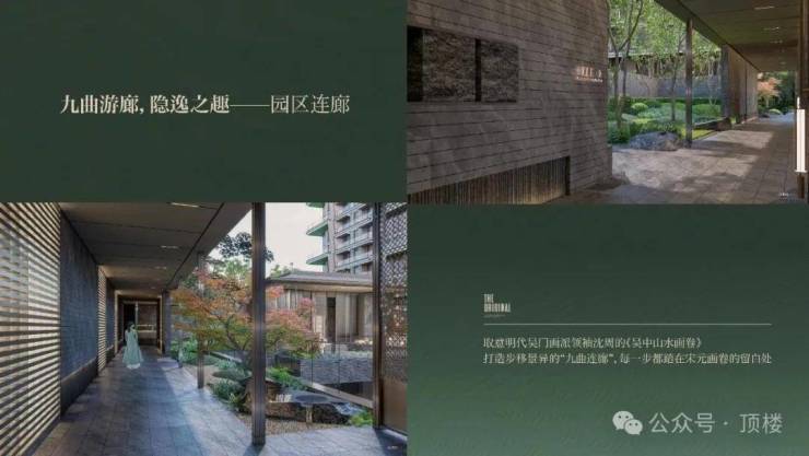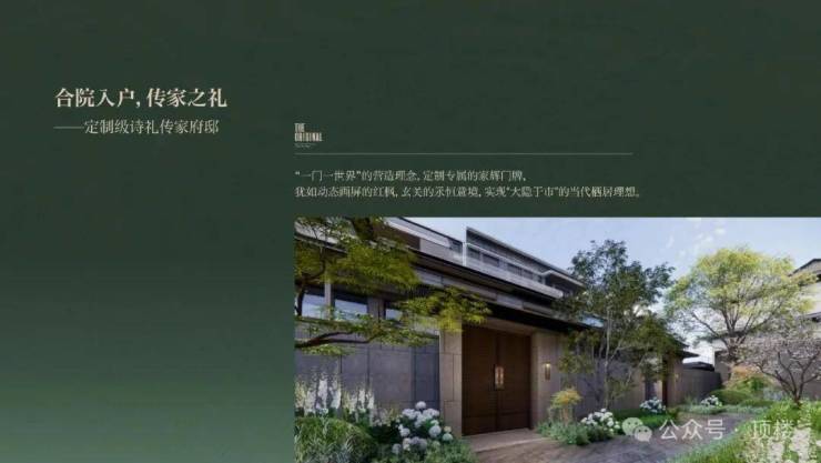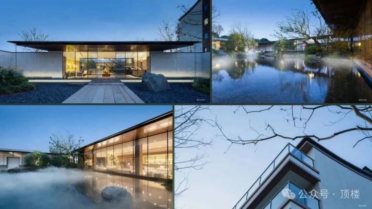 别墅为湖居合院,总五层(地面3层地下2层),通过定制门徽、定制屏风、定制灯具营造诗礼家风的仪式,内部依户型不同分三面围院和南北分院,以现代东方手法精工细作,打造宁静平和的院落。