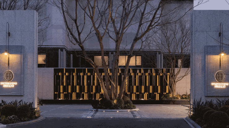 建筑为法式轻奢风格,以法式庄园为蓝本,采用超尺度门头、秩式阵列布局、拱形线条及穹顶等元素,立面质感佳。