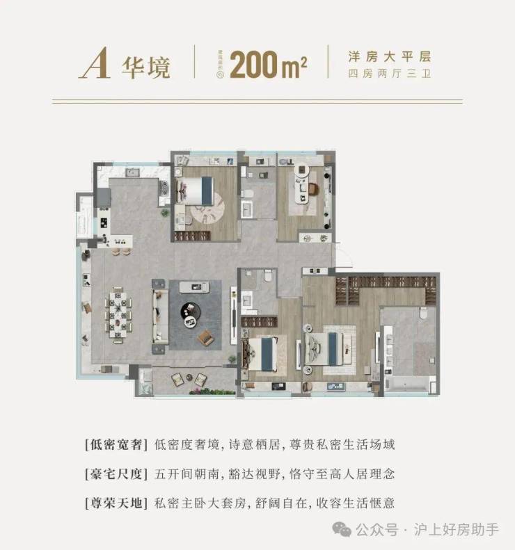200平方米大平层,奢侈的空间、全功能的户型,满足了对大宅的所有想象。