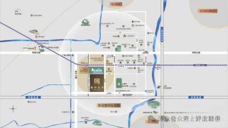 2/ 高铁出行:西侧沪杭高铁(杭州-虹桥)金山北站:直达车19分钟到达虹桥枢纽 3/ 公交出行:莲朱专线:全程高速45-50分钟可到达莲花路地铁站换乘1号线,其他各线路通往各区