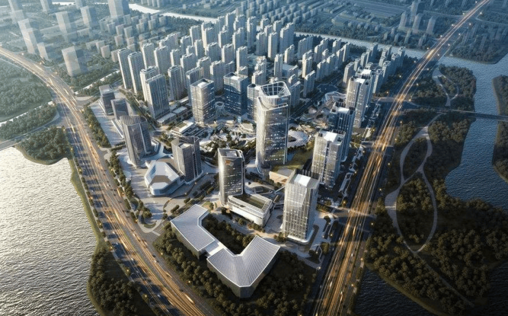 建筑布局:以约 168 米的国际金融中心 IFC 为引领,与相邻的星级酒店塔楼呼应,形成片区的重要门户。同时,还有 5 座约百米的金融机构总部大楼,以 “群岛式” 金融布局,缔造绍兴新经济增长极。