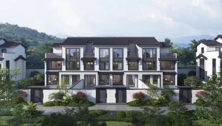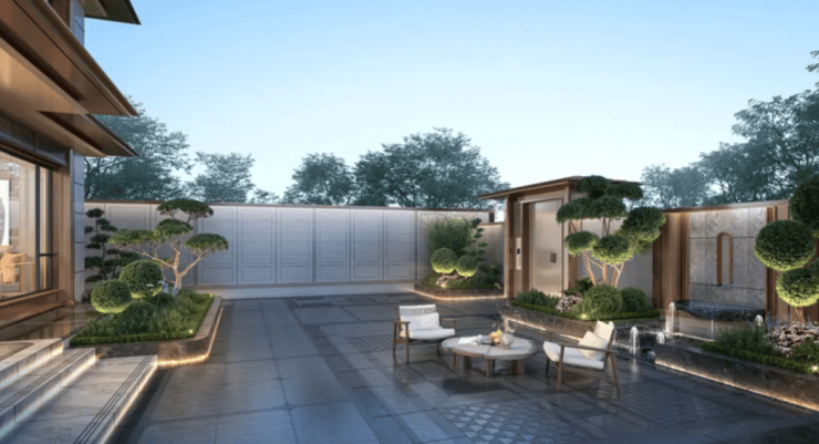 建筑设计:小区主入口采用王府形制,屋顶双檐设计,门楼退让超十米,搭配 60 吨太行山老石皮墙和日本罗汉松,极具仪式感。院墅产品为银湖首个宋风美学院墅,白墙黛瓦,飞檐翘角,展现传统建筑美学。