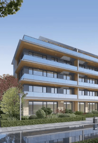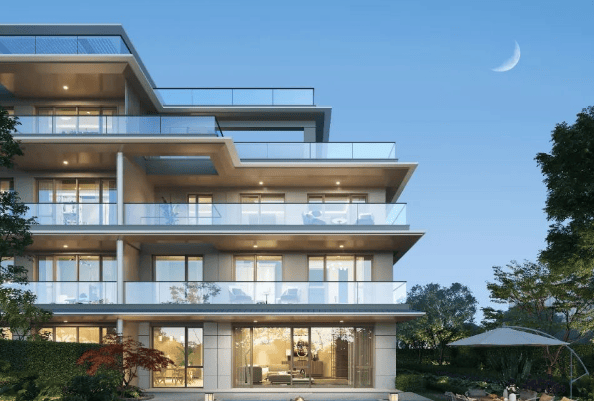 建筑设计:汲取新加坡奢宅 Cluny Park Residence 灵感,叠墅立面甄选仿木纹铝板、银色及灰色铝板,搭配米黄色石材和大面积三玻两腔 LOW-E 玻璃,特别设计向外延申的金属披檐,凸显建筑的层次感