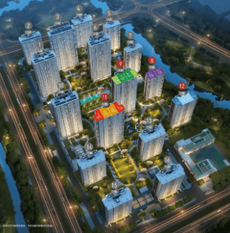 建筑外观:外立面采用玻璃幕墙 + 铝板线条的设计,窗墙比高达 80%,现代感十足,不仅提升了建筑的美观度,还能让业主享受更好的采光和江景视野。