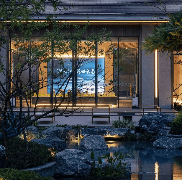 宋风园林设计:以宋代美学为蓝本,打造了立体山水园林,融入《嘉禾八景图》的意境,通过七进归家礼序、宋式建筑细节(如飞檐翘角、金属格栅)等,营造出雅致的中式居住氛围。