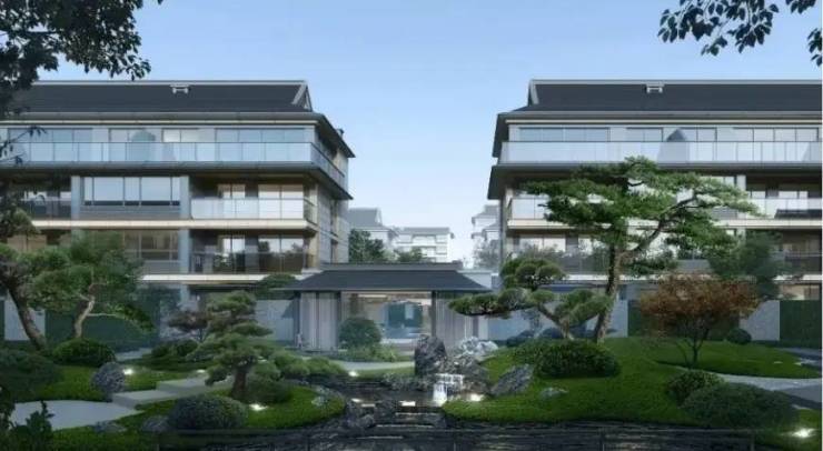 产品规划:纯低密业态,包含 4 层叠墅(主力)与 7 层洋房;建筑立面采用四面铝板 + 三层 LOW-E 玻璃,搭配爱马仕灰 / 蓝眼睛石材,宋式坡屋顶;