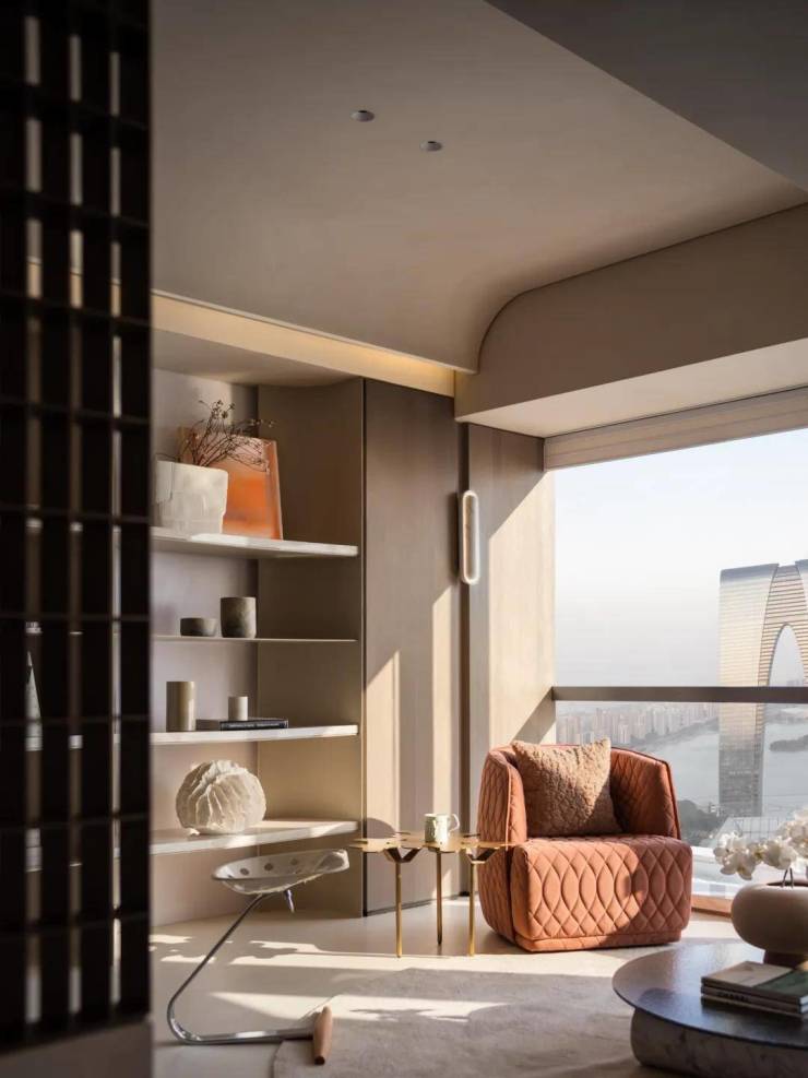“人、空间、设计”三者一体的状态,才是解读一个场域的最好方法。设计所要做的,是去繁从简,让空间场景包裹情绪。在柔和的色调与灯光中,用光影材质细节递进传达家最具象的感受。