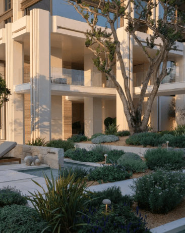 建筑风格:地中海度假风(圣托里尼 + 南法)+ 现代极简