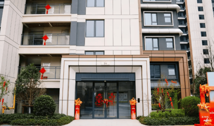 交付标准:高层精装交付(中央空调 + 新风 + 部分地暖);叠墅毛坯交付