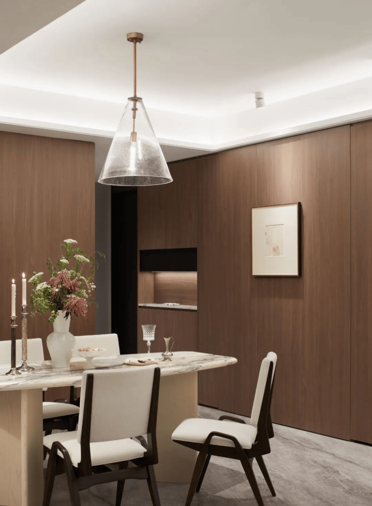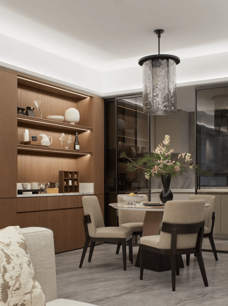 整个餐厅可以放下一整个中式圆桌,这一点对于二胎甚至三胎家庭来说实在太重要了,能承载一个大家庭的天伦之乐。