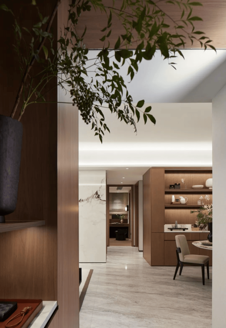 入户玄关,既保证了主人的私密空间,同时也多了一个日常用品以及鞋子的收纳空间,保证居住的舒适度。