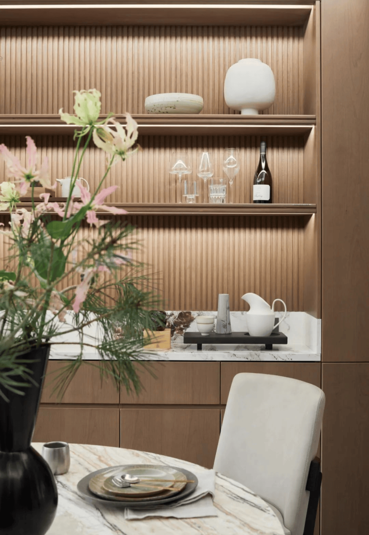 借鉴宝格丽星级酒店设计灵感的社区大堂,高阶范扑面而来,让业主归家能感受到满满的仪式感和尊贵感。