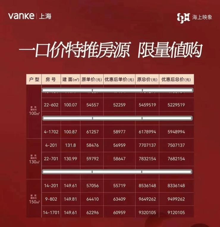 同样,在海上映象,一期最先售罄的是总价最高的185㎡大户型房源。