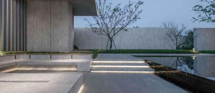 轻视任何浮夸的举止,以及对于物质成就的炫耀。这种观念反映在设计作品是一种适度呈现的抑制,整个市政界面是以开敞通透的形式打造,只吸引必要程度的目光,竖立领域感的同时,加深体验人群对项目的初始印象,节制范围内所练就的美感更易显优雅与简洁的特质。