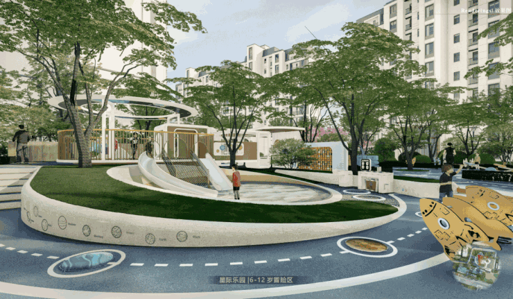 儿童滑滑梯、婴儿停车位、儿童跑道等,