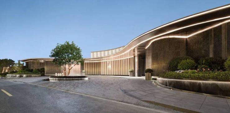 住宅⽴⾯强调公建化设计,主墙色彩体系以温暖细腻原⽊⾊为跳色,玻璃为浅灰⾊, 辅以浅色⾦属铝板及⽯材。