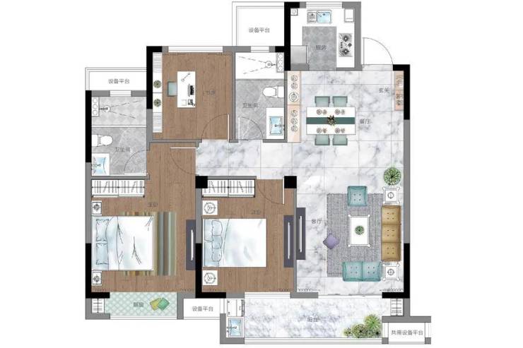 建面约109㎡ 三室两厅两卫