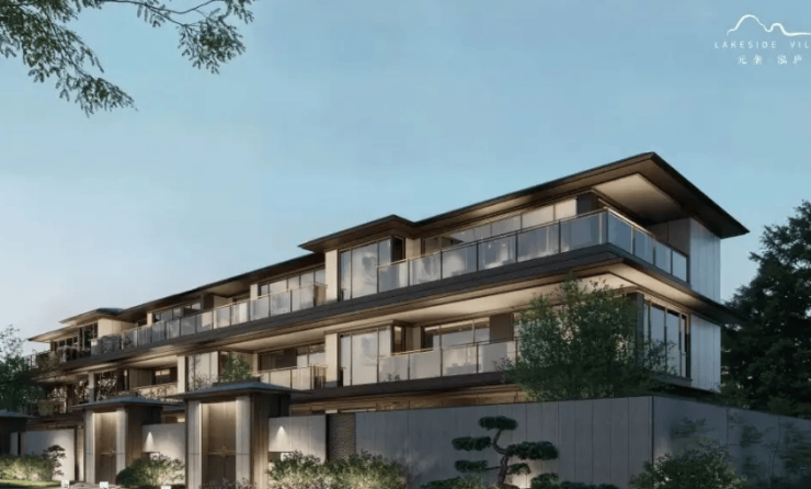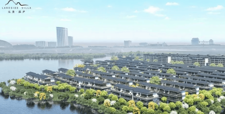 宋韵美学建筑风格,外立面采用大面积玻璃幕墙 + 铝板 + 石材,窗墙比高,通透感强;排屋地上三层 + 地下两层(地下室层高可达 5.6m,采光井充足,可做双层功能空间);社区坐拥约 1.2 公里绵长水岸线,打造 “引湖入园、借水造景” 的滨水园林,配滨水步道、中央景观、下沉庭院;地势为天然半岛,东、西、南三面环水,形成 “玉带环腰” 格局,私密性与景观视野拉满;智能安防全覆盖,圈层纯粹。