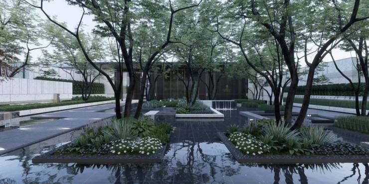 景观设计摈弃了以功能为主导的传统设计,希望传递一种流动感的生活品质,构建多层面的协同与统一,进而创造更具融合感与整体性的景观质地。