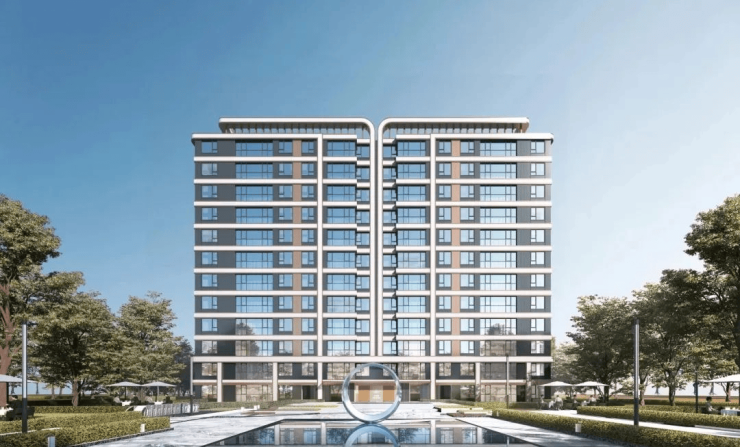 项目住宅建筑设计引用全球化潮流因素,结合土地周边自然属性,同时回归建筑的本质,将现代建筑与自然完美结合,营造一种时尚、健康、均好的中、高档精品社区的居住氛围。极简风格曲线设计,运用于建筑轮廓之中。超大面宽玻璃幕墙设计,呈现摩登+自然+文化的建筑美学,立面为现现代摩登风格,采用三段式经典格局,整个建筑立面透出明快简洁、但又富有朝气的建筑气质。立面色调运用高级香槟金+淡雅白,中空玻璃,映射时代的建筑美学