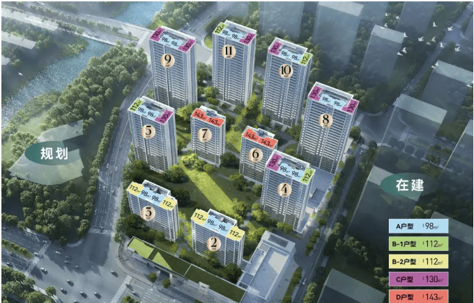 面积段:98㎡、112㎡、130㎡、143㎡
