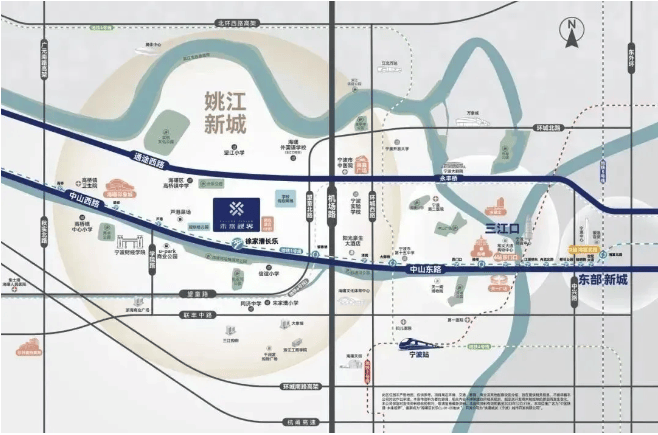 项目占位素有“浙东第一街”之称的中山(西)路。向西,身后是与日俱新的姚江南岸与高桥TOD板块腹地;向东,眼前是一脉三江口、东部新城的缤纷与繁华。