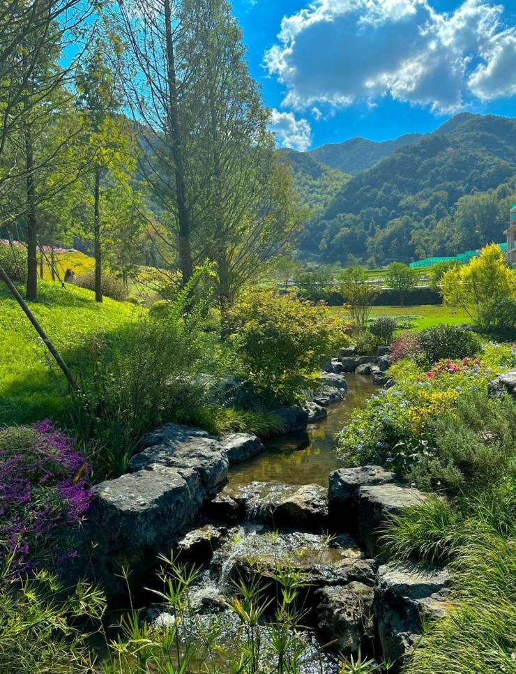 建筑设计:整体建筑立面以现代主义风格为主,建筑形体简洁、大气,以暖色调为主,辅以大面积落地玻璃和干挂石材,外立面时尚美观,与自然环境完美融合。建筑群依山迎湖自由布局,规避了建筑同质化问题。